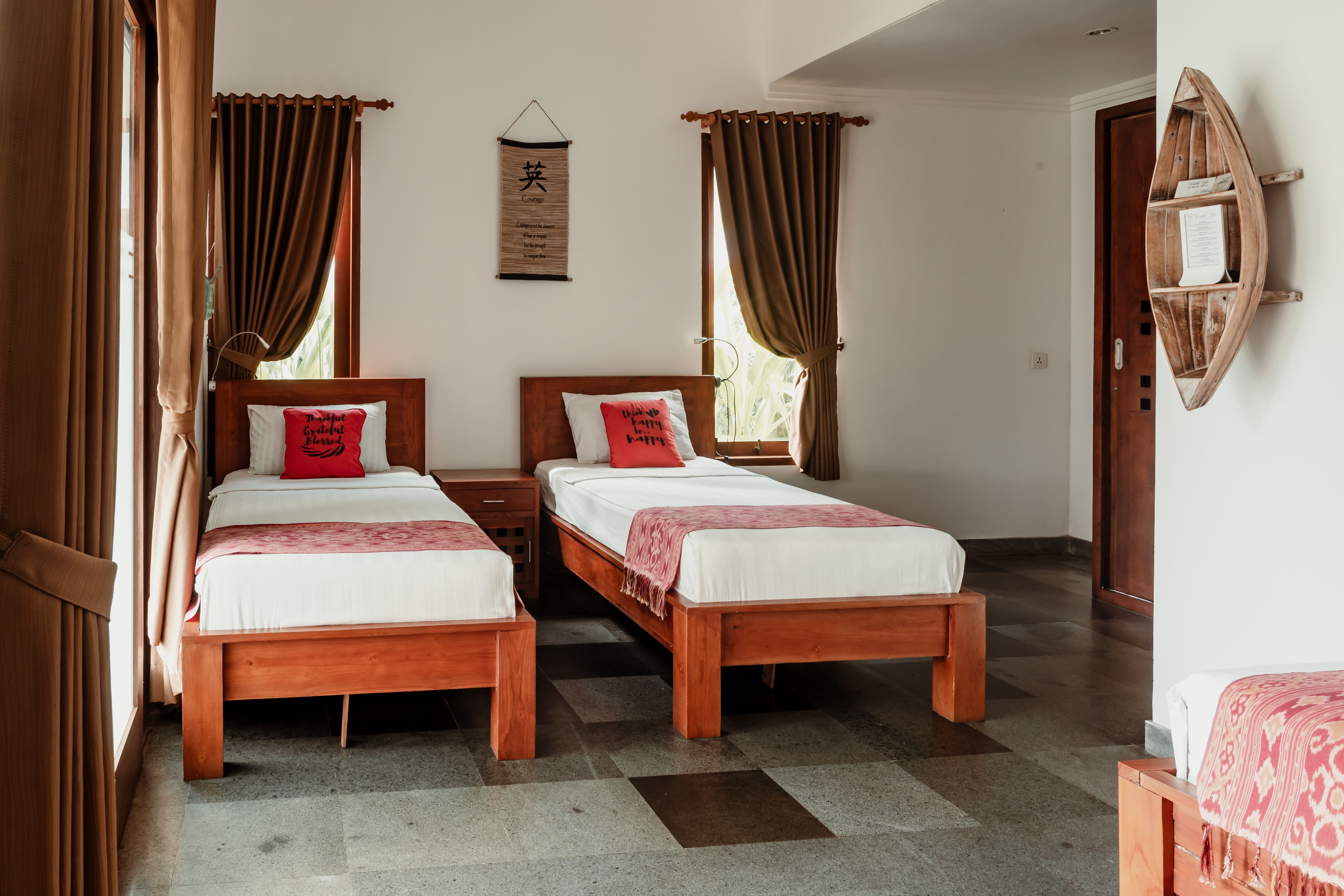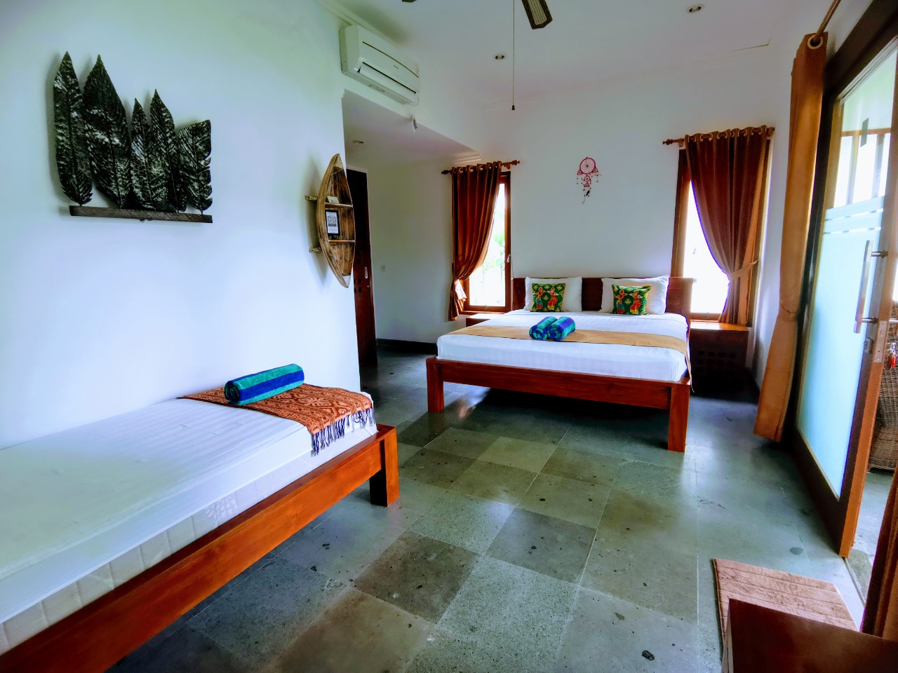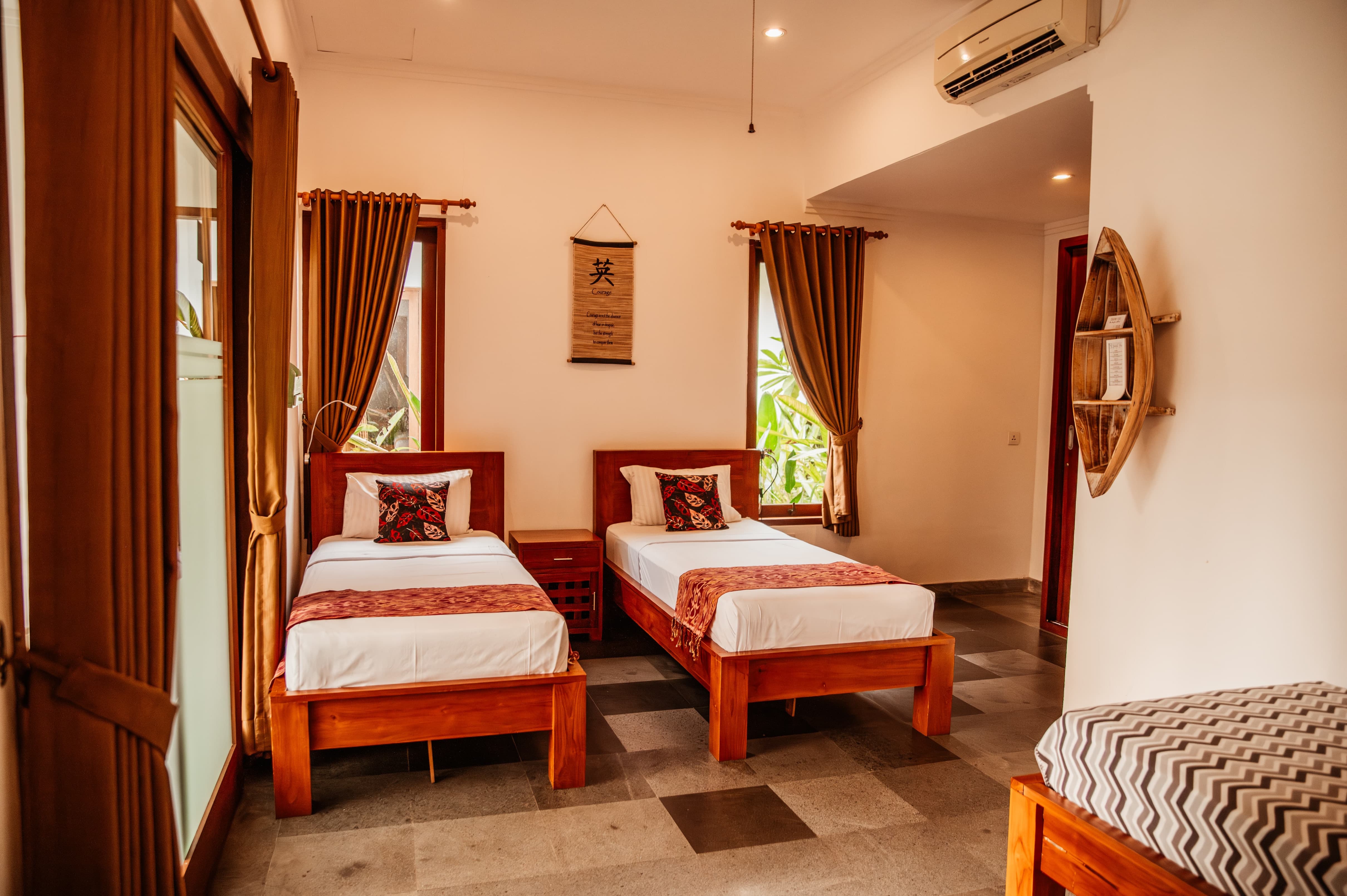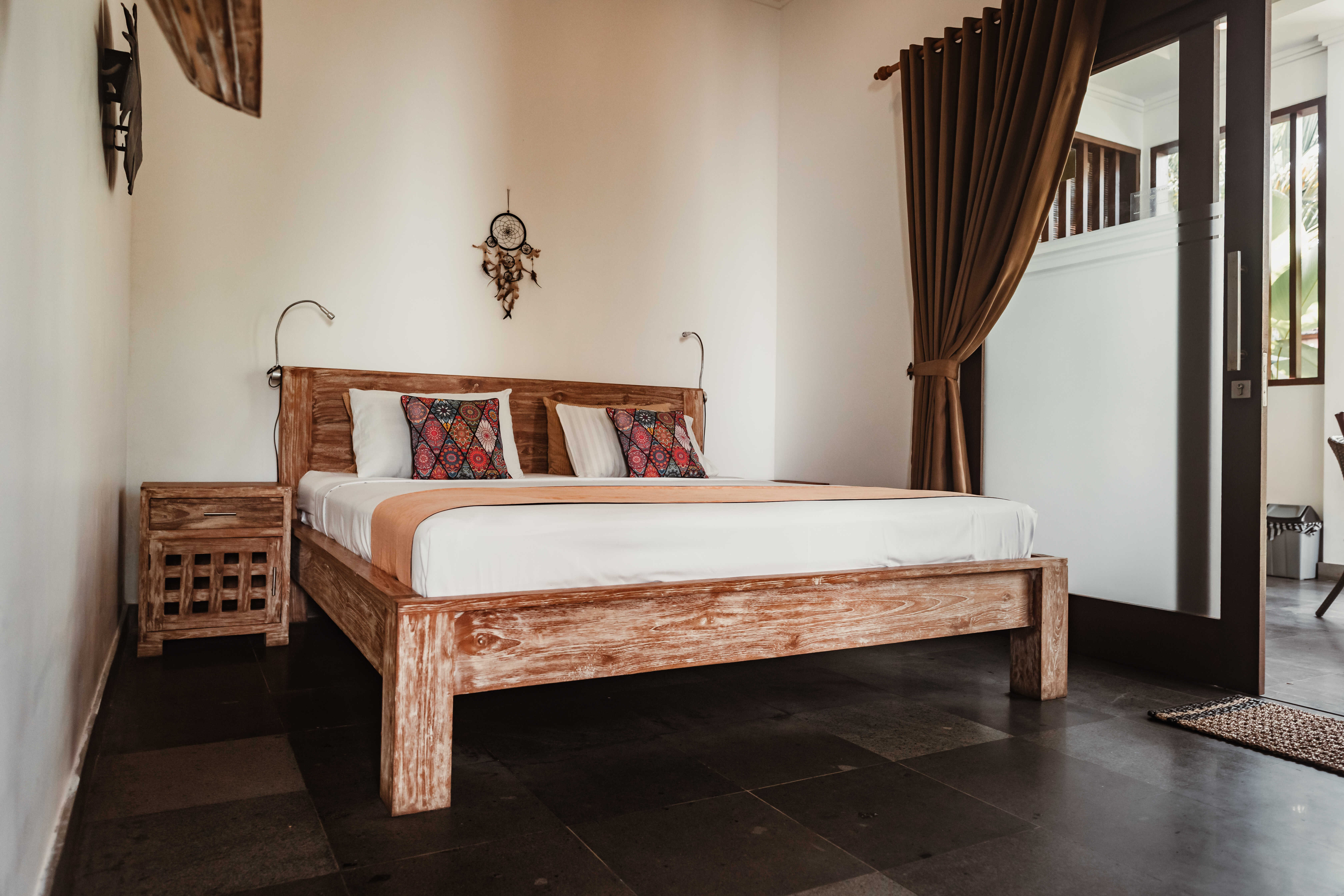 ✔️ Ložnice s klimatizací a minimalistickým vybavením – balijský vibe, žádné zbytečné doplňky