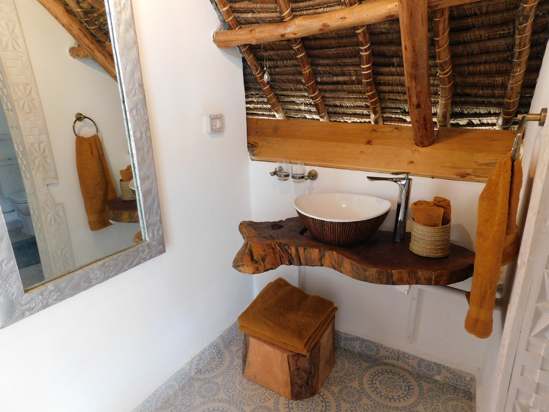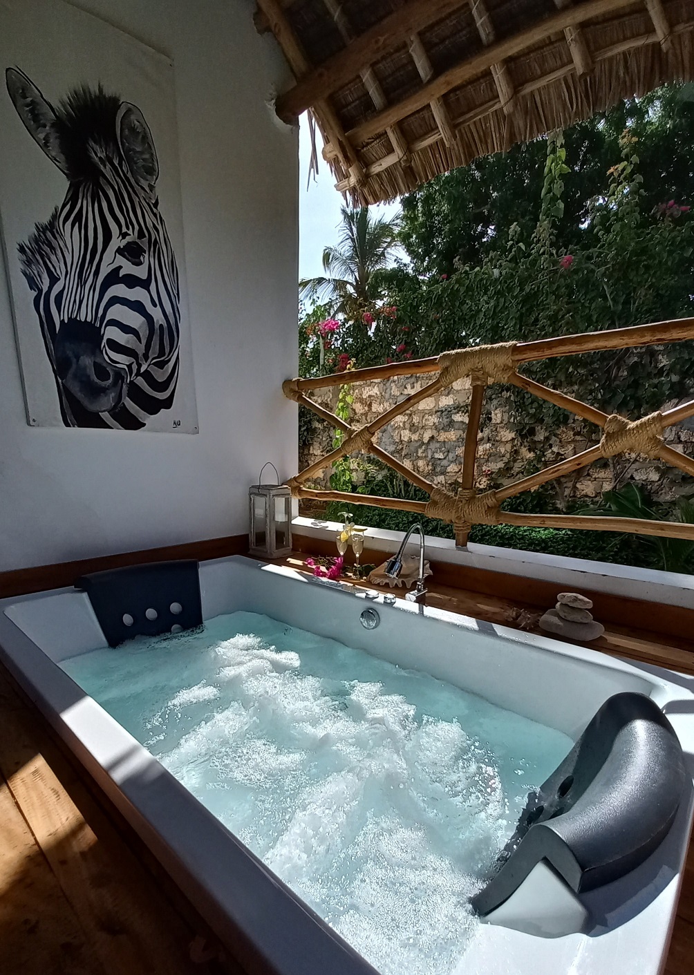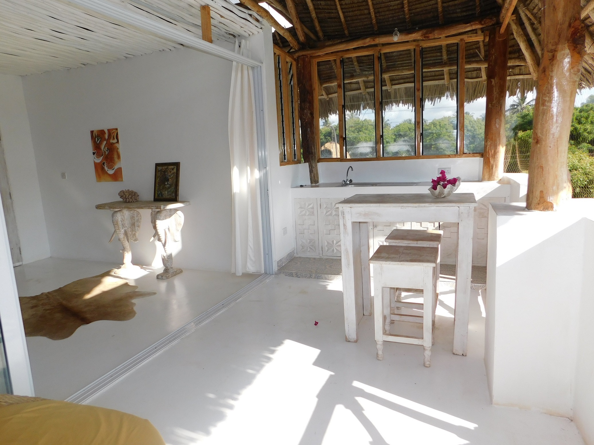 Na venkovní terase je umístěný kuchyňský kout se základní výbavou, lednička, indukční deska, konvice, mixer, kuchyňské vybavení. V apartmánu je pod střechou z makuti relaxační prostor, šatna, Wifi zdarma.