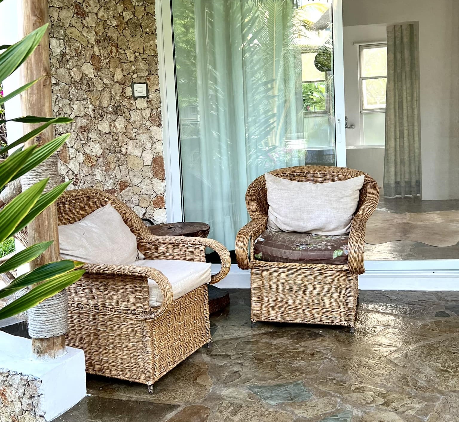 Stylový apartmán Safari se nachází v prvním podlaží. Z terasy má nádherný výhled na zahradu a bazén.