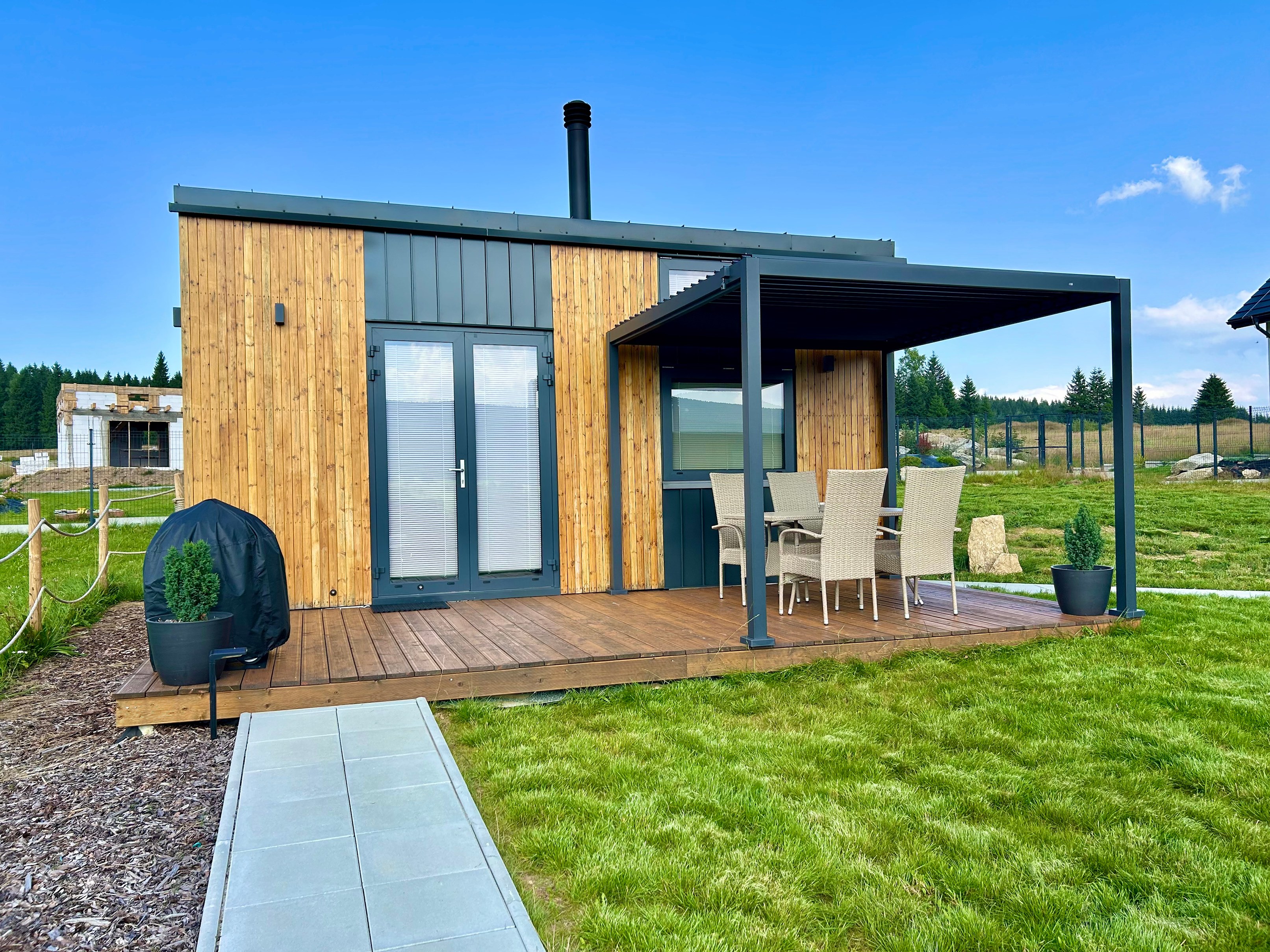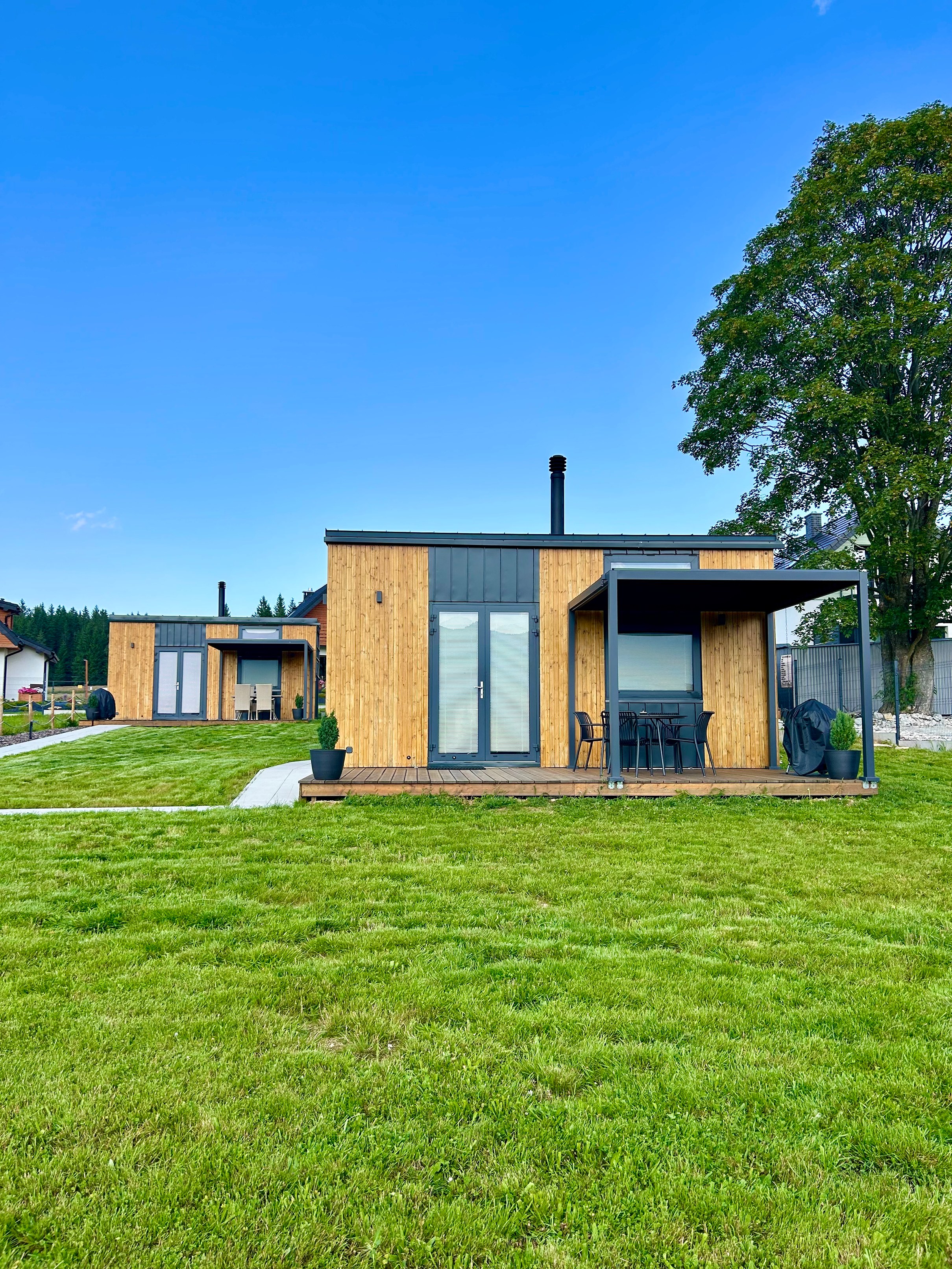Zážitkové ubytování v plně vybavených tinyhousech s jedinečným výhledem v polských horách. K dispozici máme 2 tinyhousy, každý až pro 4 osoby. Každý tinyhouse má 1 manželskou postel, 1 rozkládací pohovku, koupelnu s WC a sprchovým koutem, kuchyň s lednicí, varnou deskou, troubou, mikrovlnou troubou, varnou konvicí, kávovarem a veškerým nádobím. Každý tinyhouse má svou terasu, pergolu a gril. Lůžkoviny, ručníky a deky jsou samozřejmostí. Areál zahrnuje zahradu, dětské hřiště, kolárnu s lyžárnou a soukromé parkoviště.