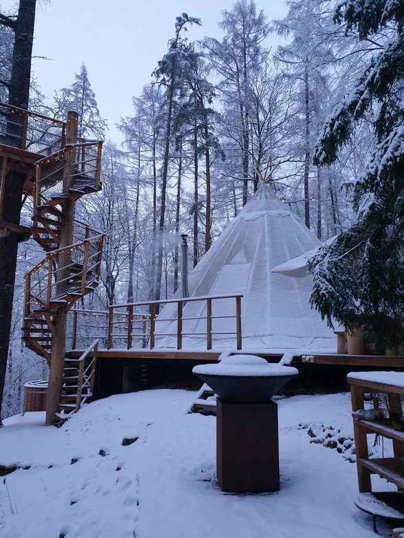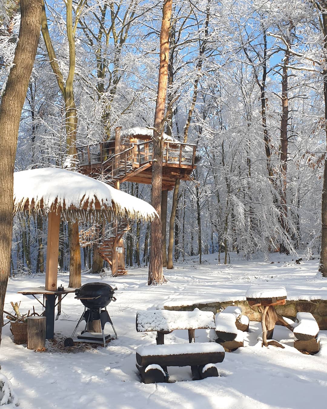 Ubytování v korunách stromů je absolutním návratem k přírodě bez připojení k síti elektrické energie a vody. Vinotéka, lampičky a vařič jsou přesto k dispozici, stejně jako pitná voda. Možnost přiobjednání bohatých snídaní a naložených lokálních surovin na gril. Osprchovat se můžete v přírodní sprše přímo pod obydlím. Stromhouse je možné temperovat pomocí kamínek, ale za velmi chladného počasí doporučujeme přibalit teplé oblečení. Najdete nás v malebném Posázaví v osadě Pyskočely asi 45 km jihovýchodně od centra Prahy, mezi městem Sázava a Stříbrnou Skalicí. Stromhouse nabízí unikátní výhled z 6 metrové výšky na Národní přírodní rezervaci Ve Studeném na levém údolním svahu řeky Sázavy.