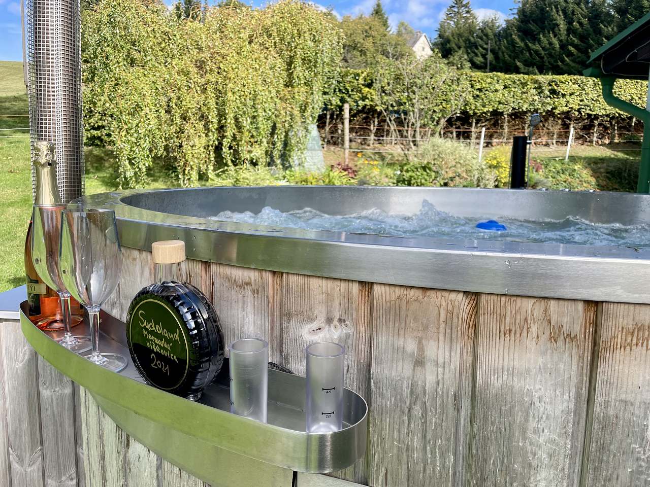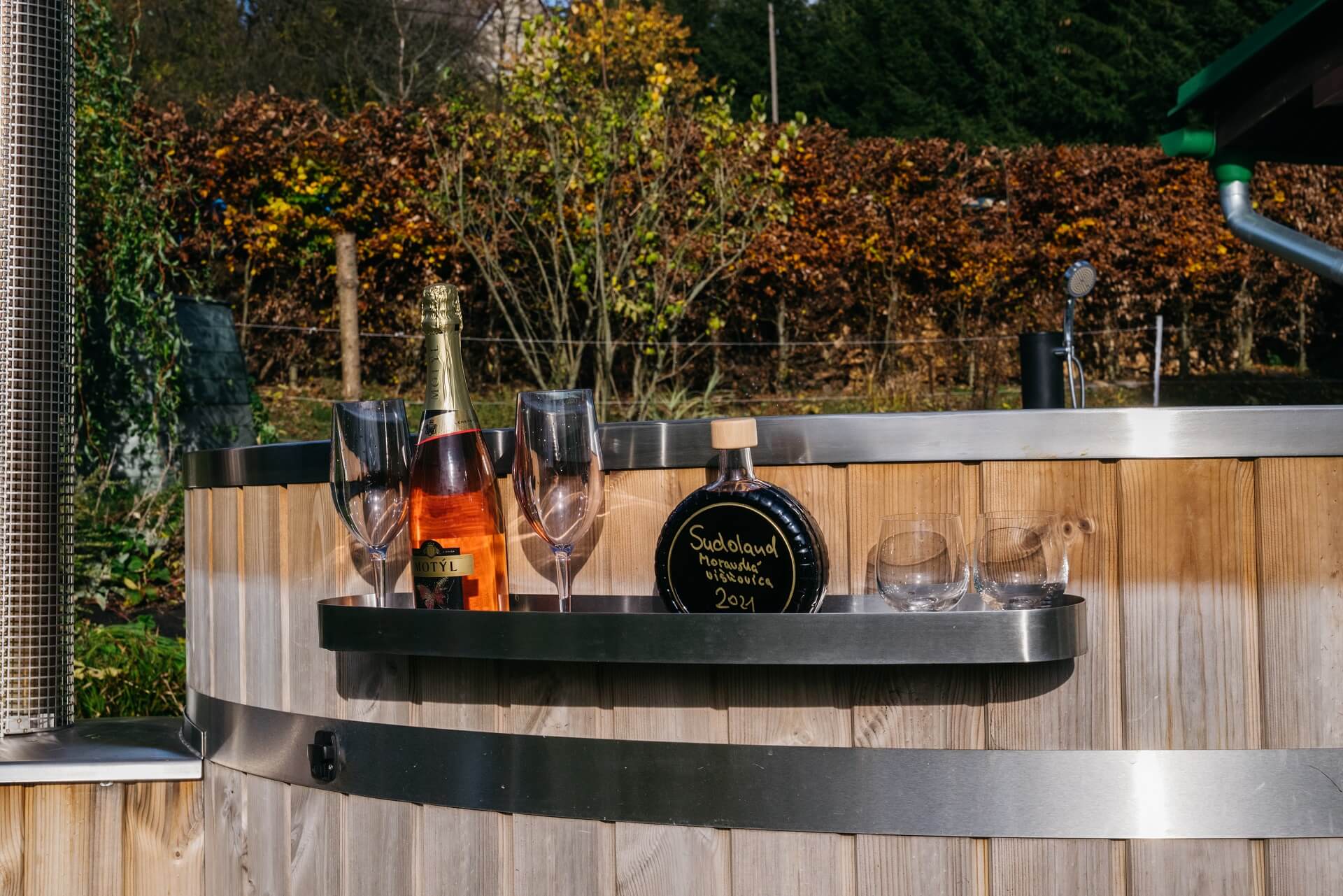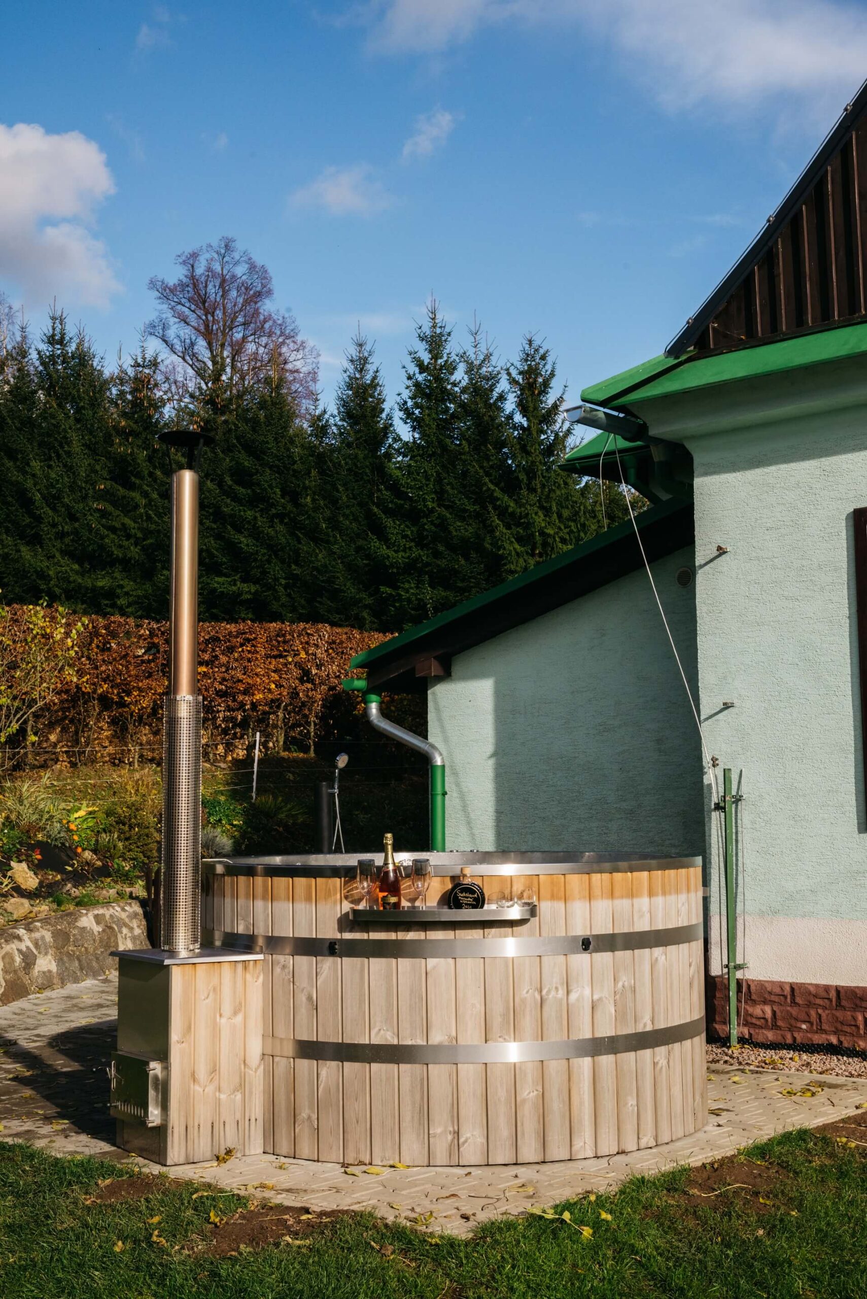 - Pronájem venkovního nerezového wellness sudu s vytápěním až pro 8.-10.hostí s vnitřním barevným osvětlením, pultíkami na nápoje, buble systémem, filtrací, termo krytem a 12.hydro masážními tryskami je podle délky pobytu: 1. - 3. noci - 1 500 Kč (každá další noc 500 Kč.) Neplatí při pronájmu podkroví nebo přízemí. V tom případě je sud v ceně pronájmu!