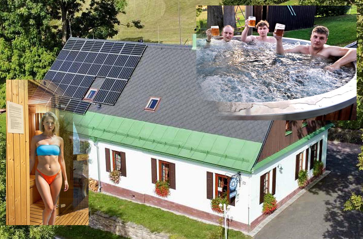 Chata Severka s Wellness. Rádi Vám pronajmeme celou chatu, nebo jednotlivé pokoje. Hosté mohou využívat saunu s odpočívárnou, koupací hydromasážní sud s osvětlením a barem, šipky, minifotbal velkoplošnou televizi a zásobený minibar. Každé patro má svoji kuchyňku a společenskou místnost.