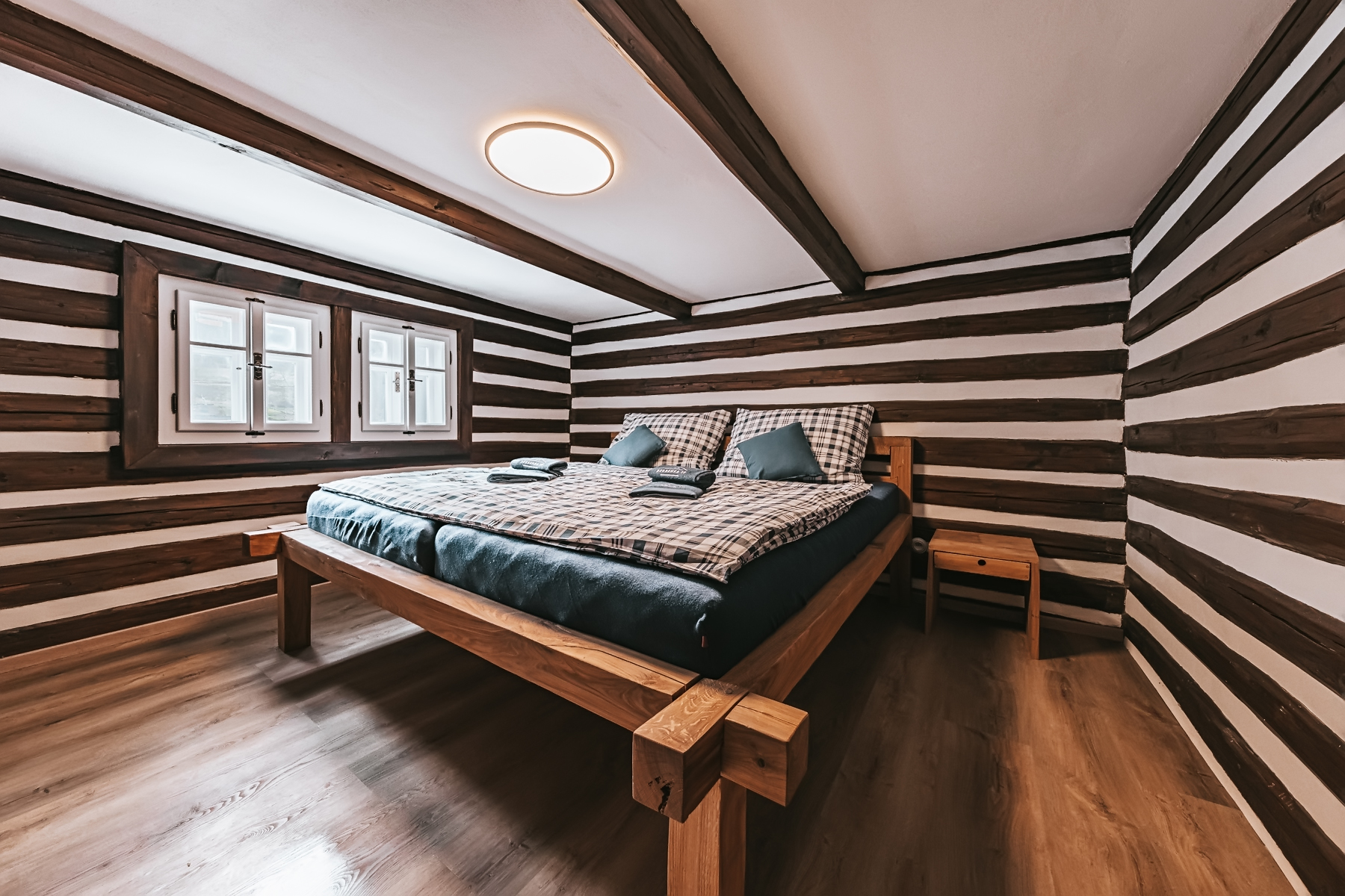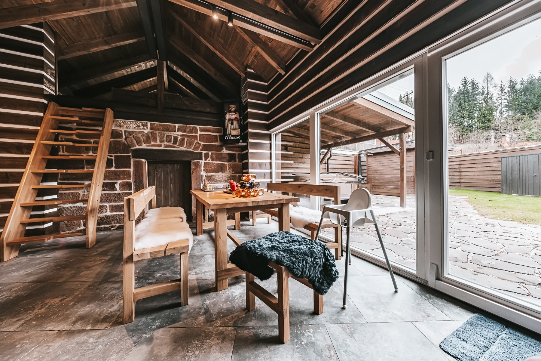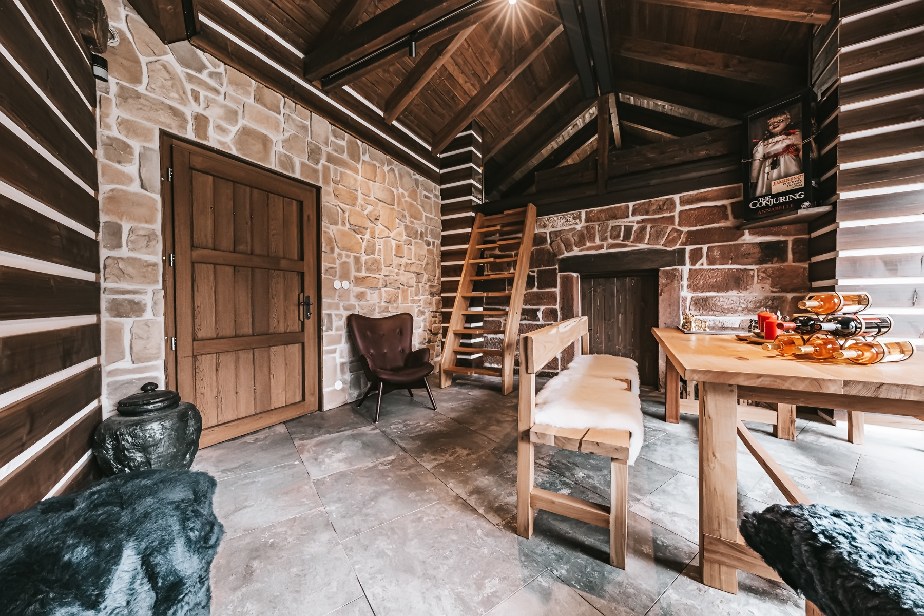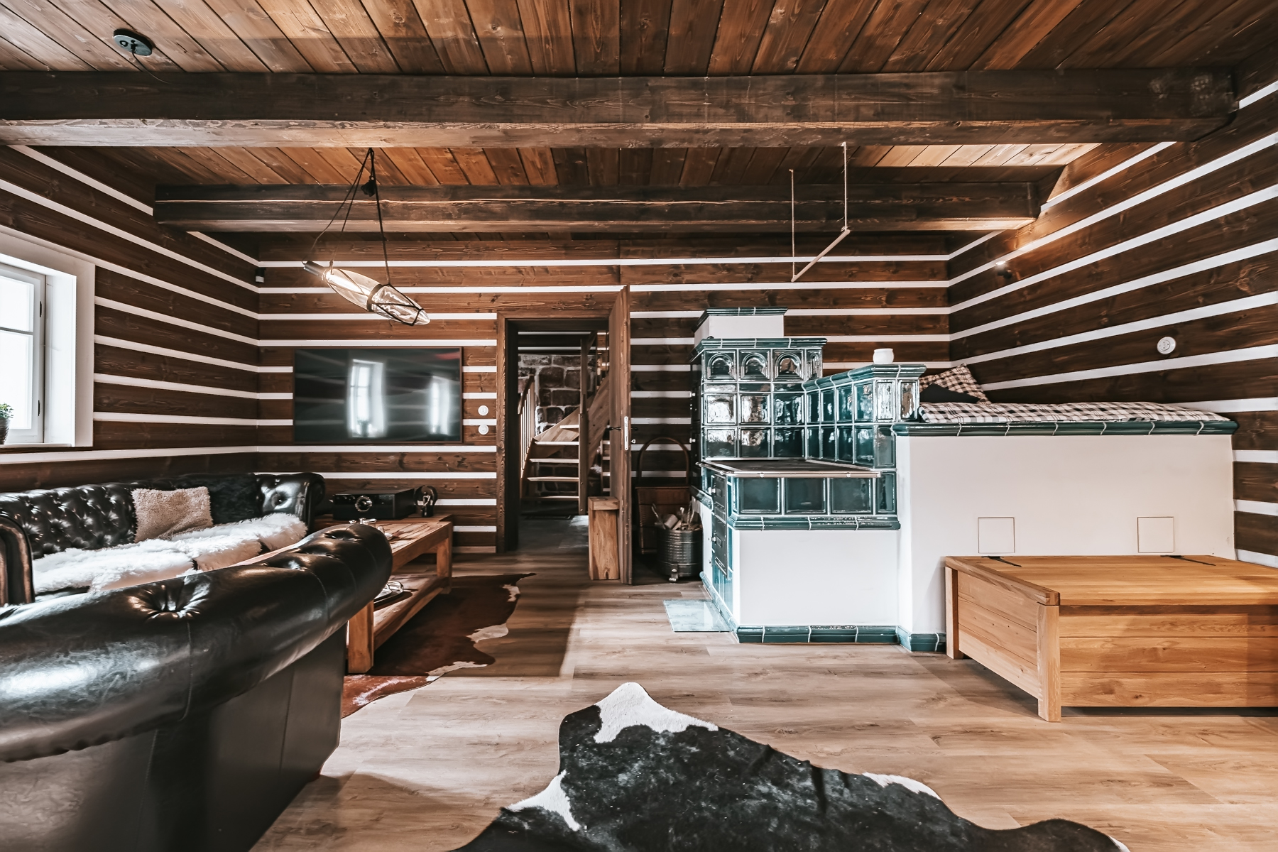 Pronajměte si luxusní roubenku se saunou a vířivkou v Krkonošském podhůří v obci Stará Paka – Ústí. Naše roubenka prošla kompletní rekonstrukcí, která byla dokončena na začátku roku 2024. V chalupě můžete vidět kombinaci zachovaných původních kamenných zdí spolu s moderními prvky, které přispívají ke komfortu návštěvníků, jako je například podlahové topení v celé chalupě včetně vytápění a ohřevu teplé vody pomocí tepelného čerpadla. Naše luxusně vybavená roubenka nabízí nadstandardní ubytování a je postavena u klidné říčky Popelky, jež Vám případně díky vybudovanému vstupu po dřevěných schodech poskytne osvěžení po saunování či při horkých letních dnech. Také můžete večer posedět na zápraží a jen tak se zaposlouchat do krásného šumění říčky tekoucí před chalupou. Chalupa je vybavena venkovní saunou a pro Vaši relaxaci také venkovní vířivkou pro až 6 osob. Přímo z vířivky můžete sledovat venkovní širokoúhlou televizi a je jen na vás, zda zvolíte romantický film a vychutnáte si relax se šampaňským v ruce, a nebo budete s kamarády a vychlazeným pivem natočeným přímo ze sudu pomocí naší pípy sledovat sportovní zápas. Pokud budete chtít, můžete si zatopit v kachlové peci, na které mohou ti zdatnější případně i něco uvařit. Kdo by si troufl, může v peci upéct něco dobrého a vyzkoušet si tak, jak pekly dřív naše prabáby.