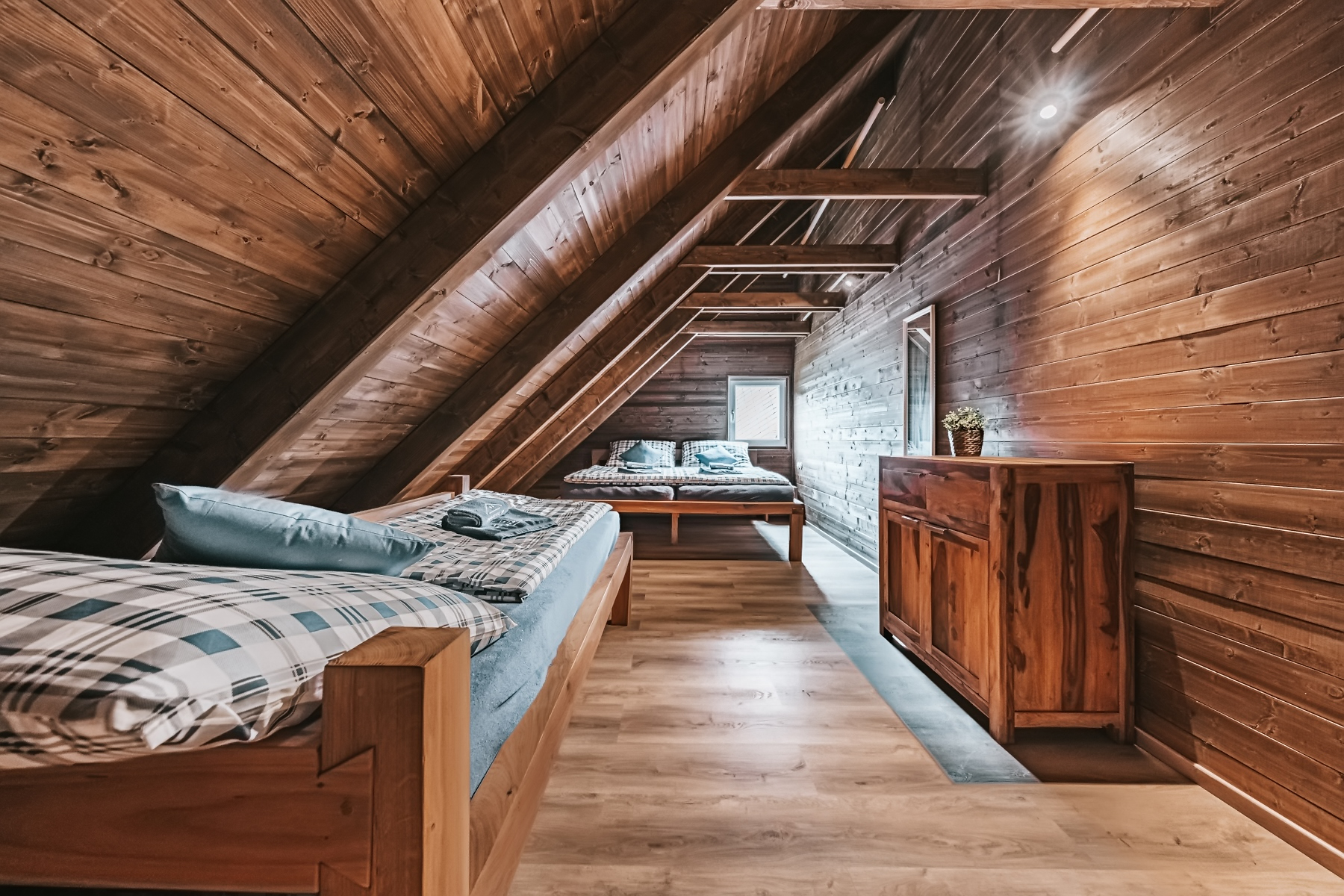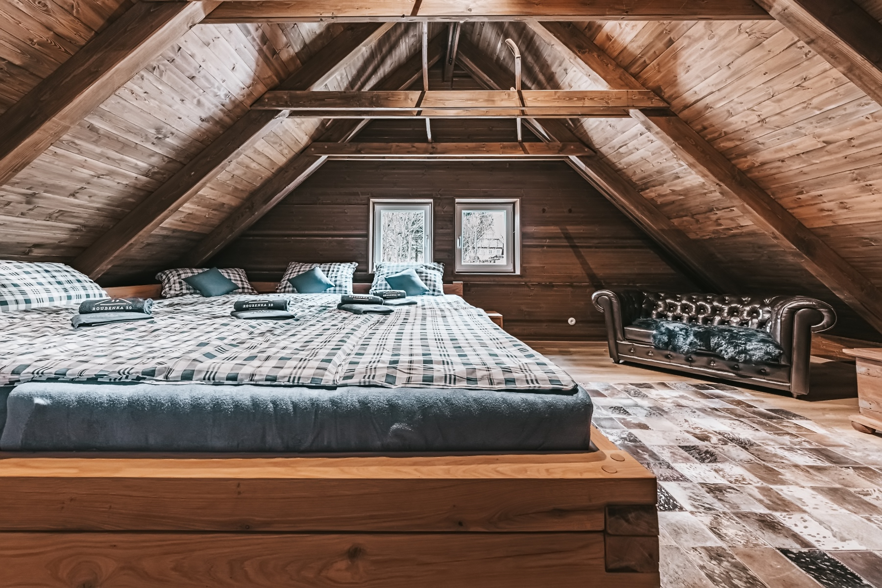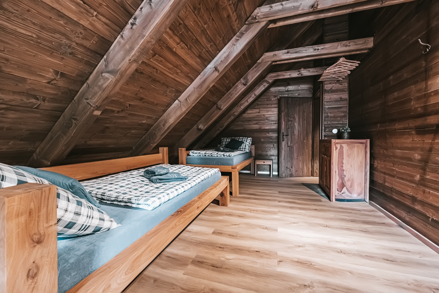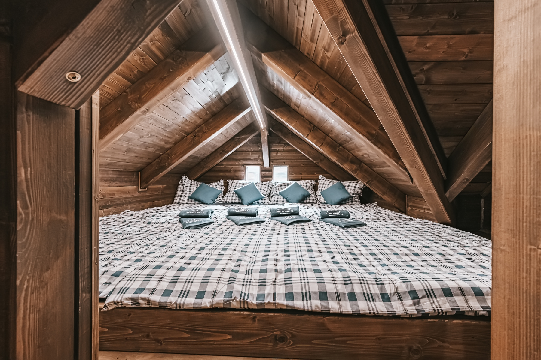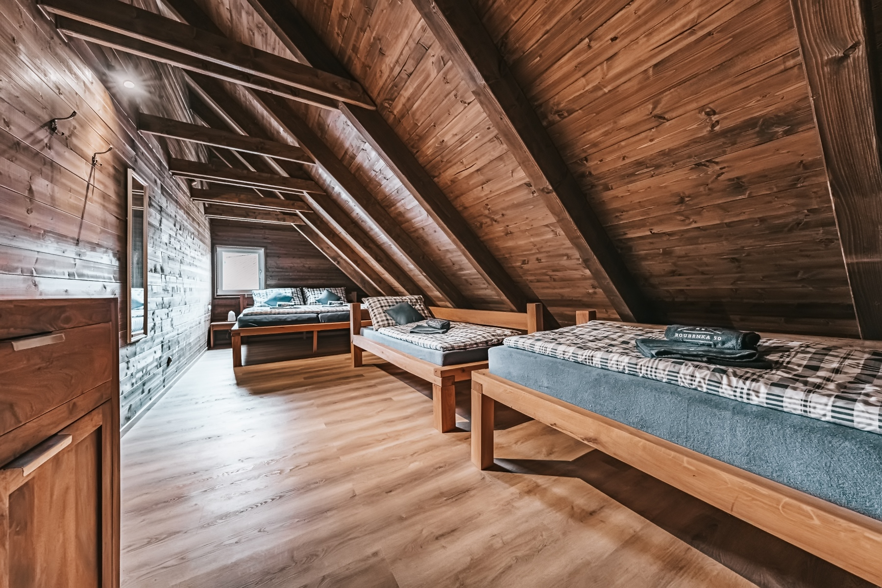 Roubená chalupa s romantickým spaním na pohádkové peci se stylovým zařízením, vířivkou a saunou. Chloubou naší chalupy je tzv. „Velký pokoj“, ve kterém najdeme na míru dělanou dubovou postel o rozměru 300 x 300 cm, na které se vyspí buď celá rodina nebo kupa dětí či pár dospělých. Dále je v tomto pokoji širokoúhlá televize a elektrický krb, který báječně navozuje romantickou atmosféru. Ubytování je na klidném místě v přírodě u lesů a luk. Ve zdejších lesích najdete houby a borůvky, v okolí jsou koupaliště, turistické trasy a spousta krásných míst k uspořádání výletů. Užijí si zde jak příznivci relaxu, tak i sportovně založení jedinci.
