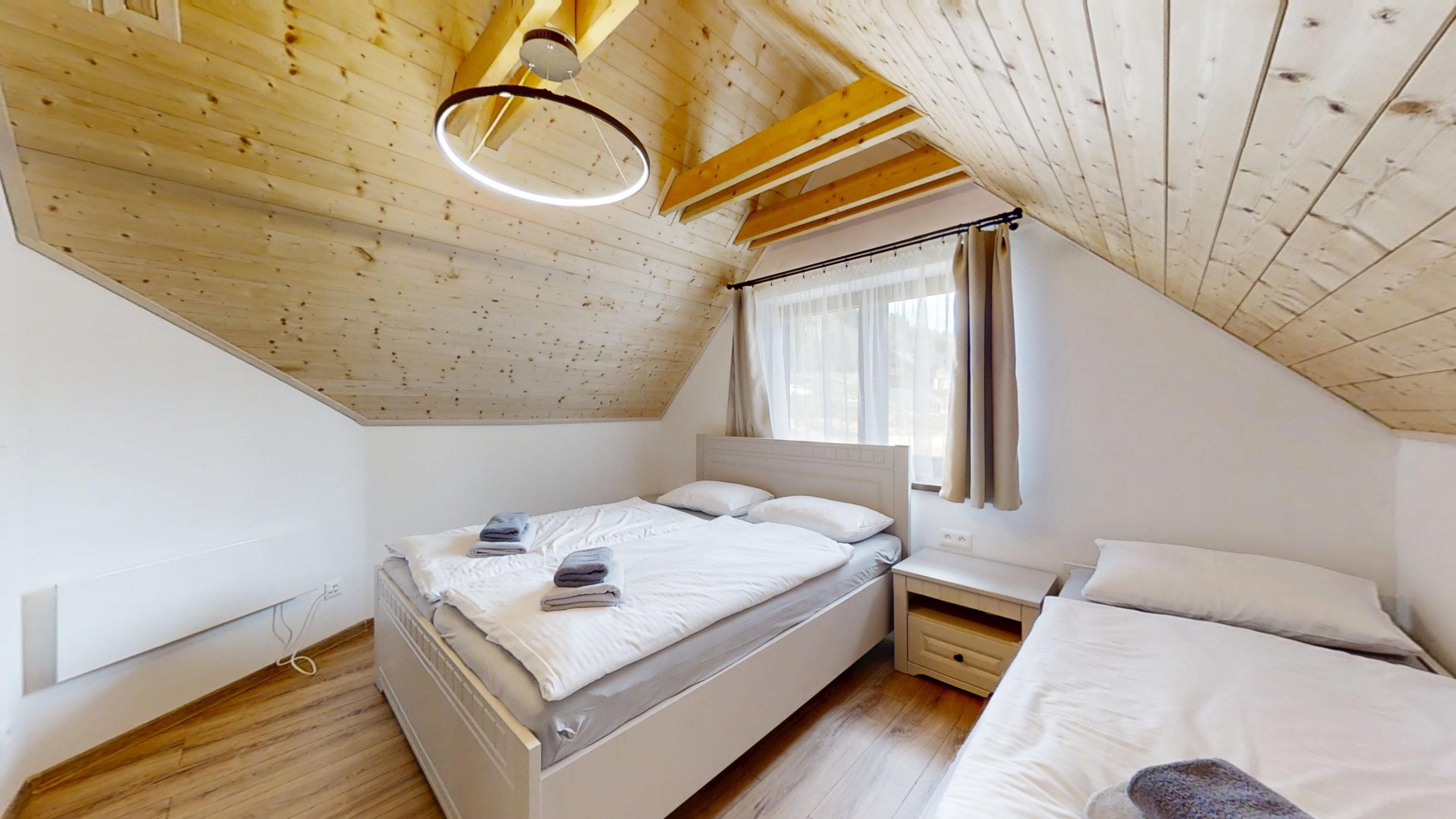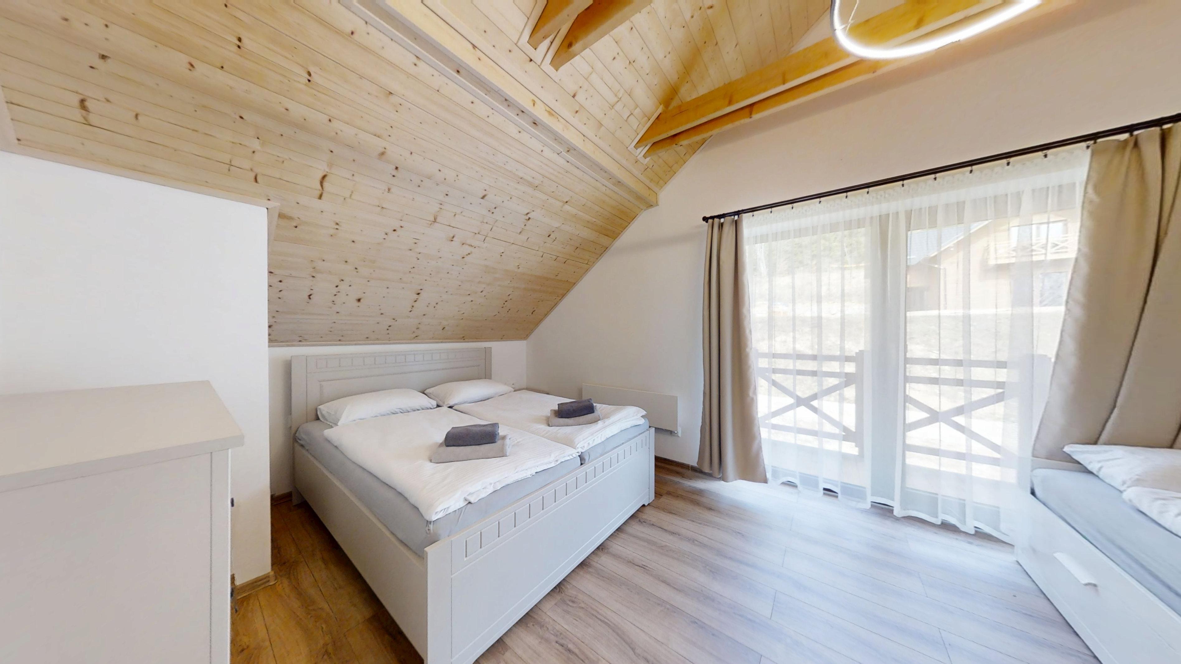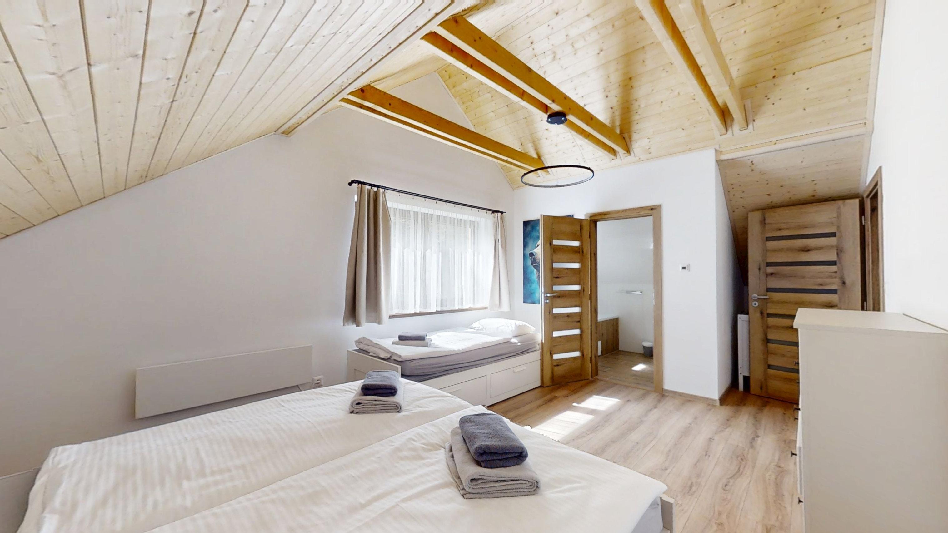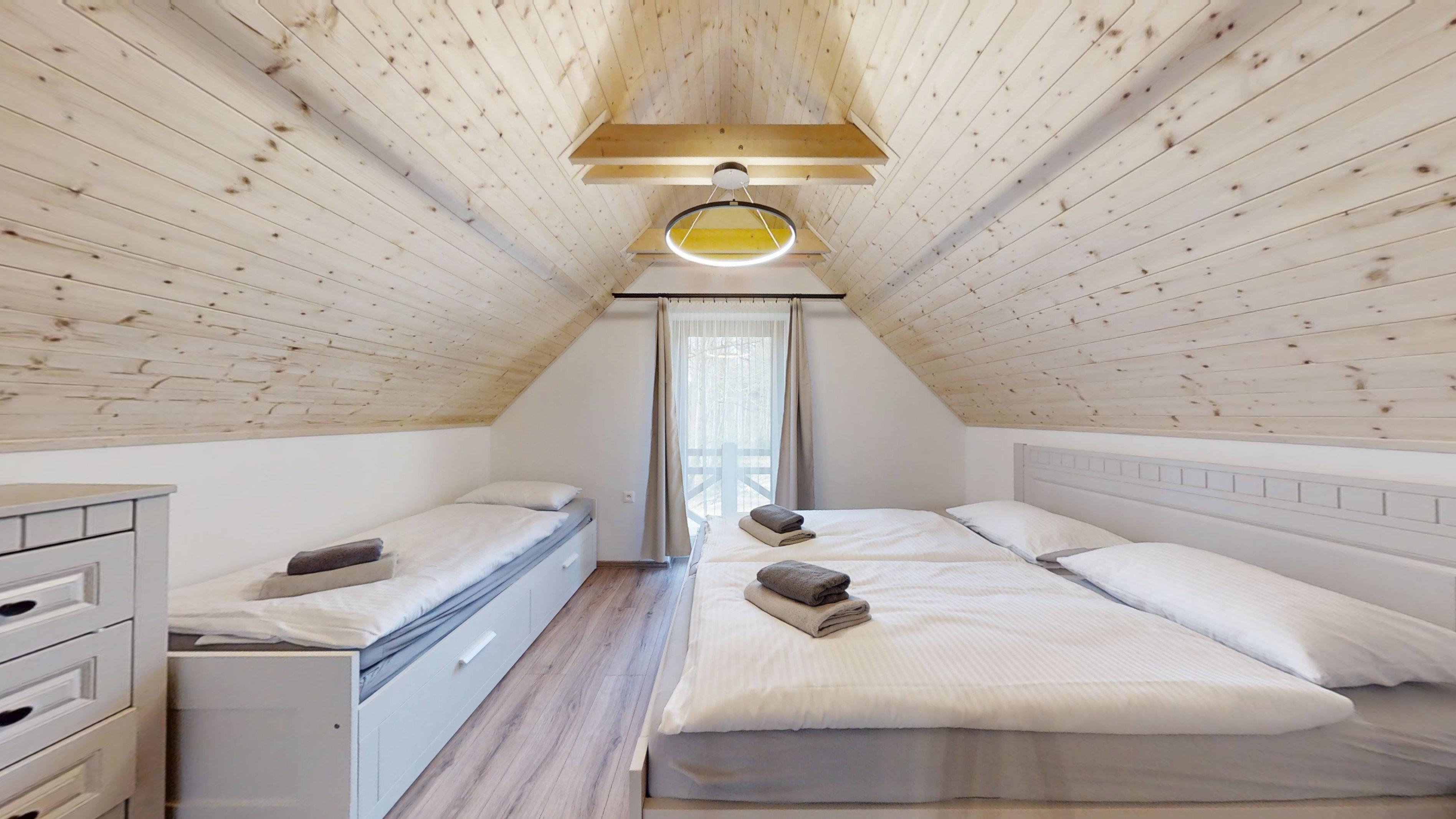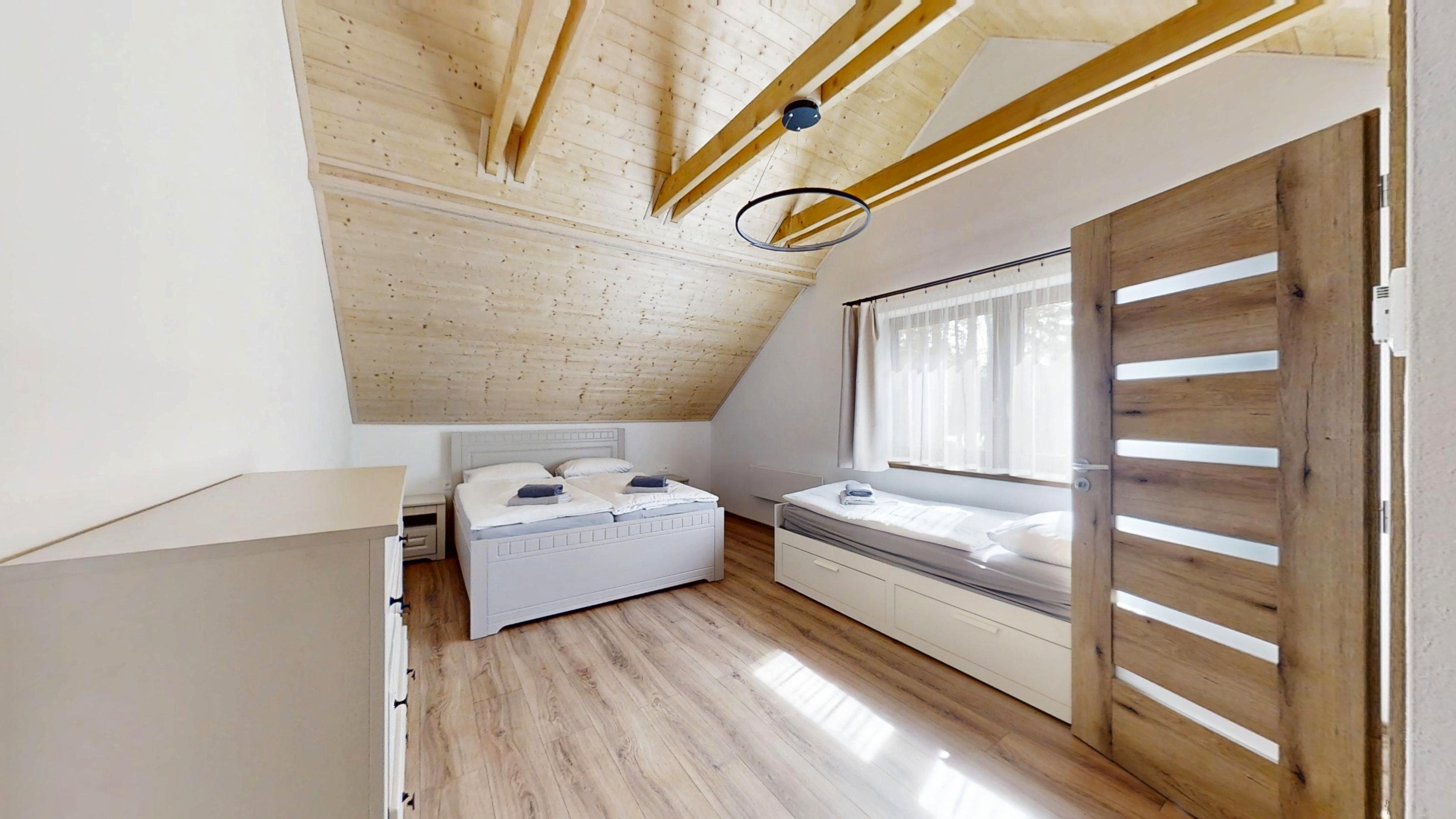 Každá spálňa: manželská posteľ + jednolôžko + výsuvné plnohodnotné lôžko