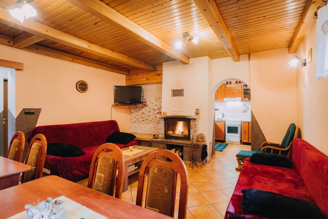 Centrom chaty je priestranná spoločenská miestnosť s: