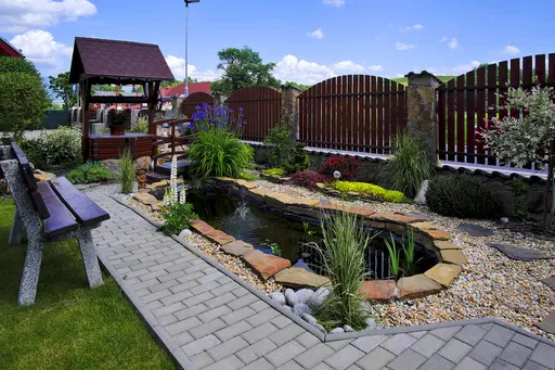Relaxačný kútik s jazierkom, potôčikom a vodotryskom