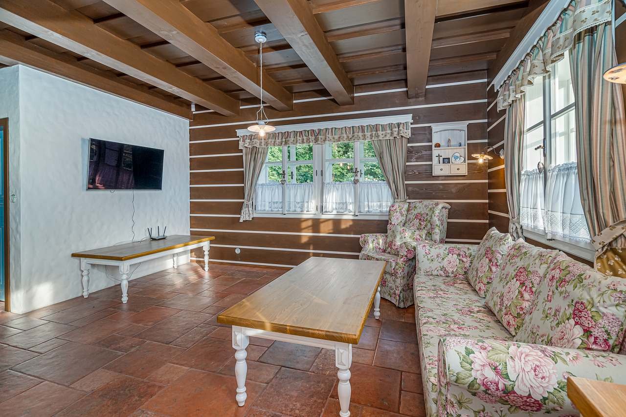 obývací část - světnice se sedací soupravou, širokoúhlá SMART TV
