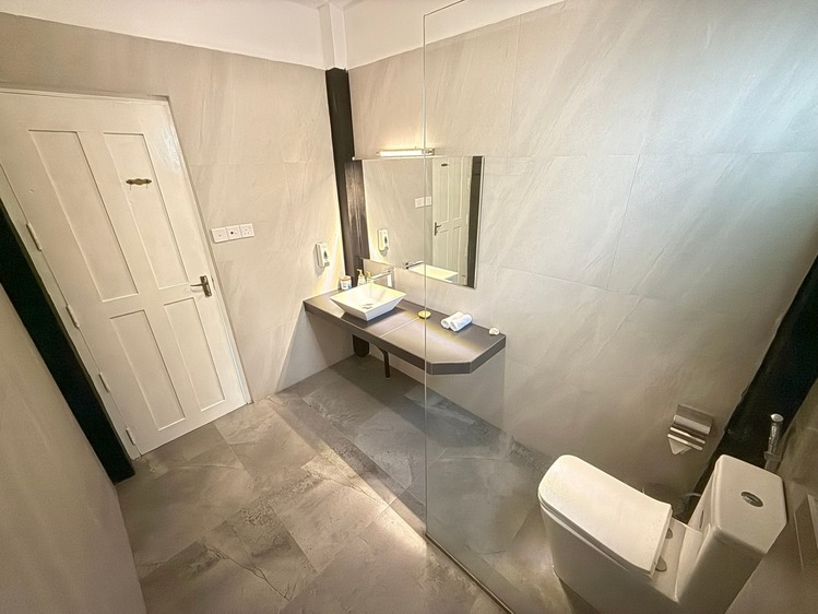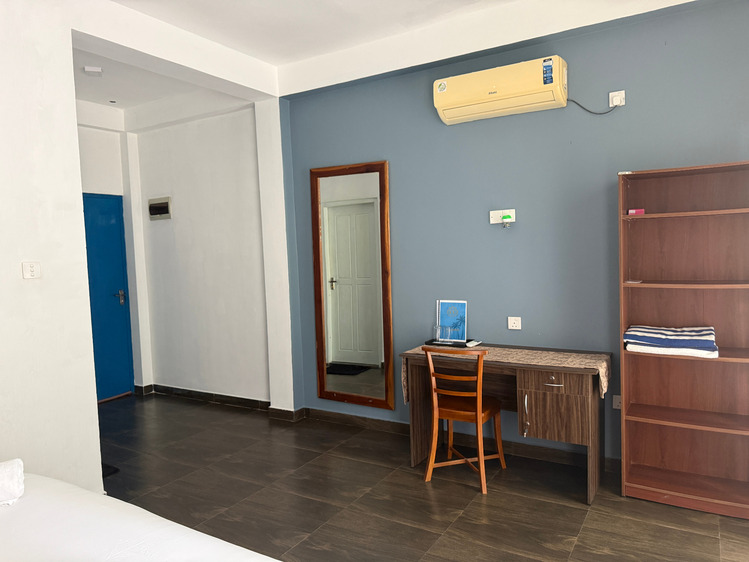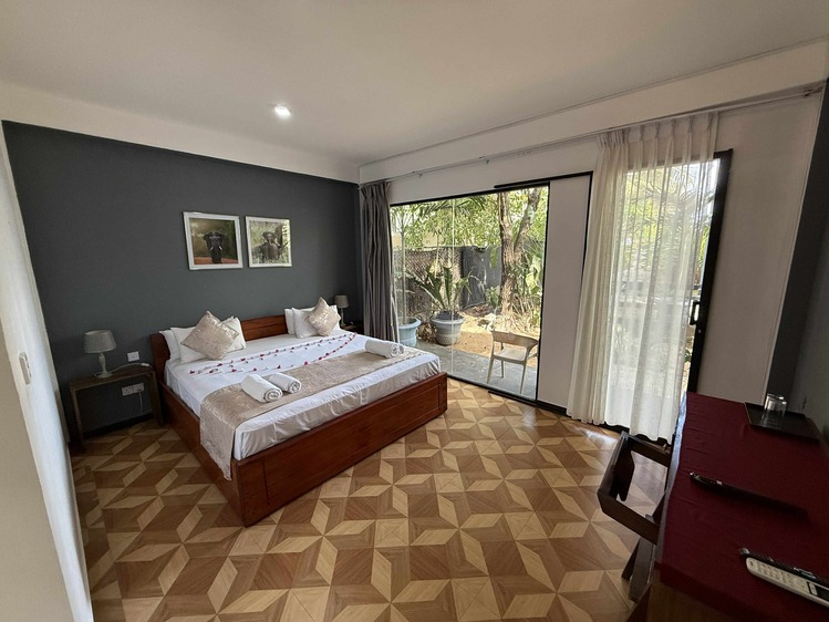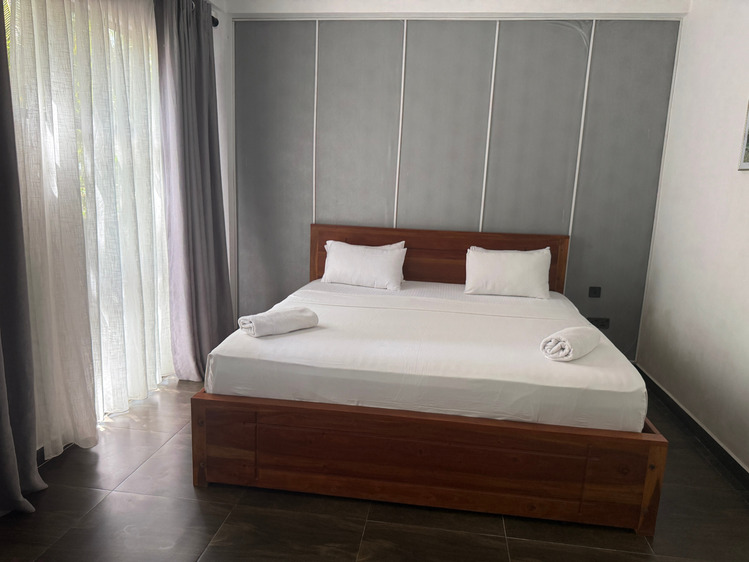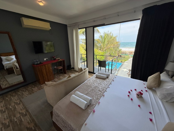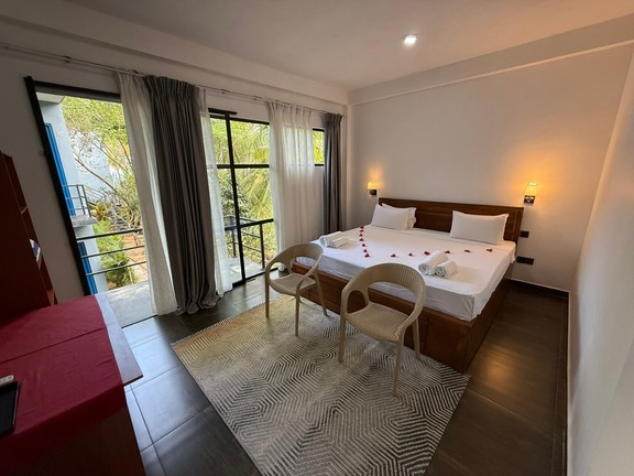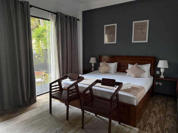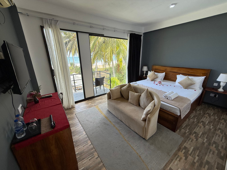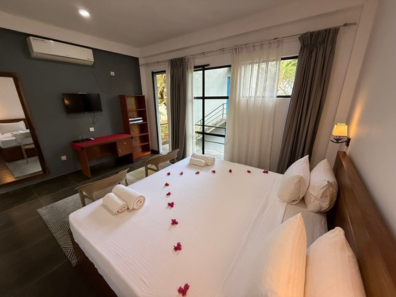 Prostorný dvoulůžkový pokoj v přízemí s přímým vstupem na soukromou terasu a nádherným výhledem na Indický oceán. Ideální pro hosty, kteří chtějí mít moře doslova na dosah.