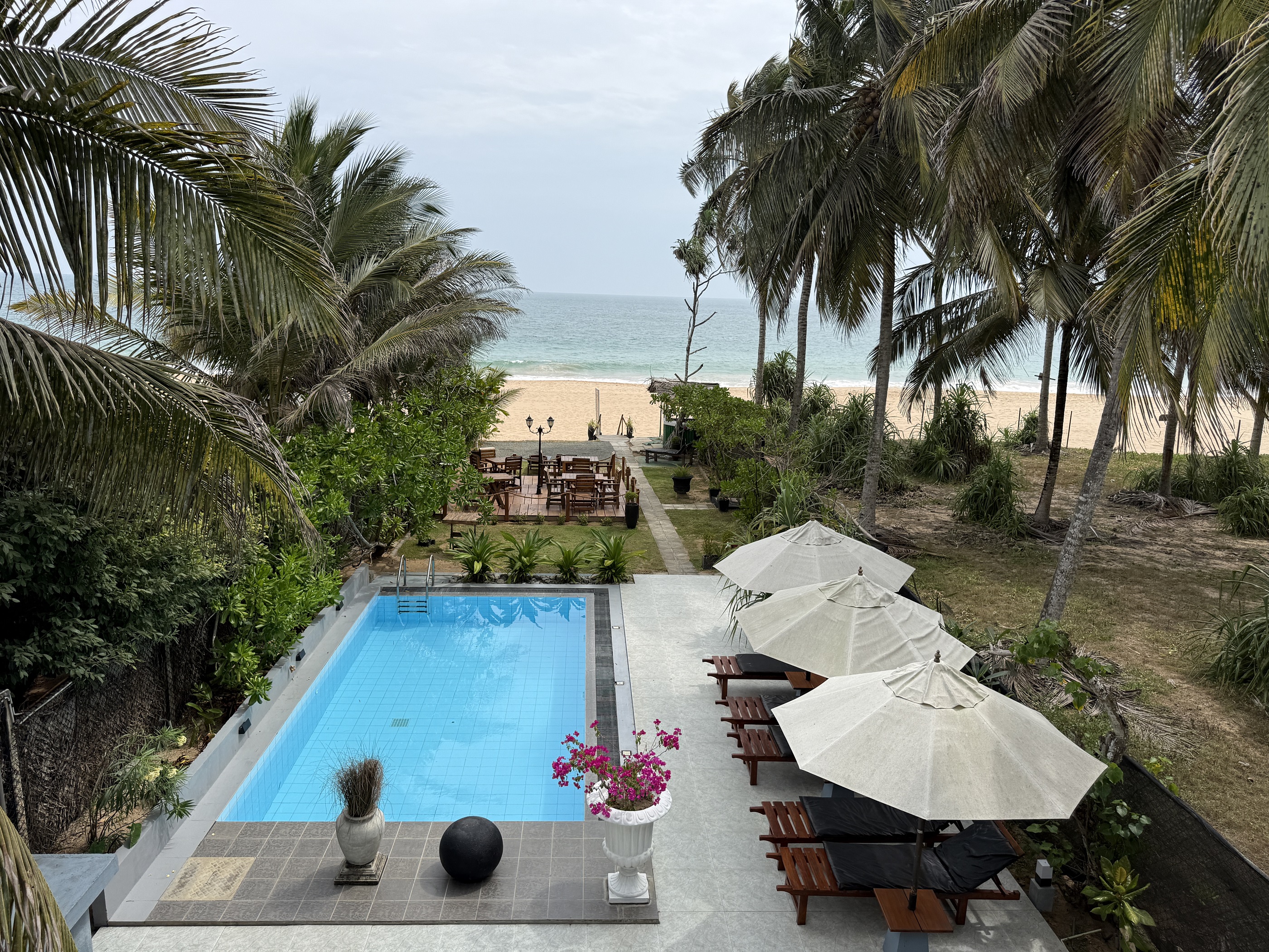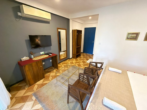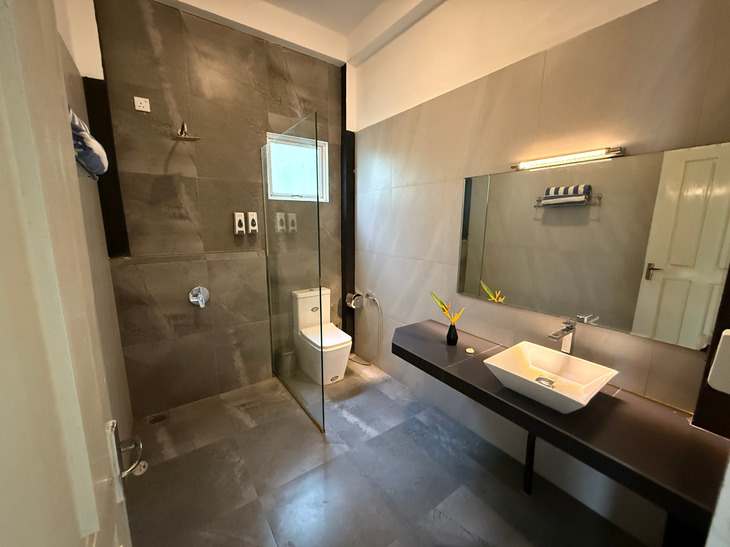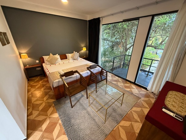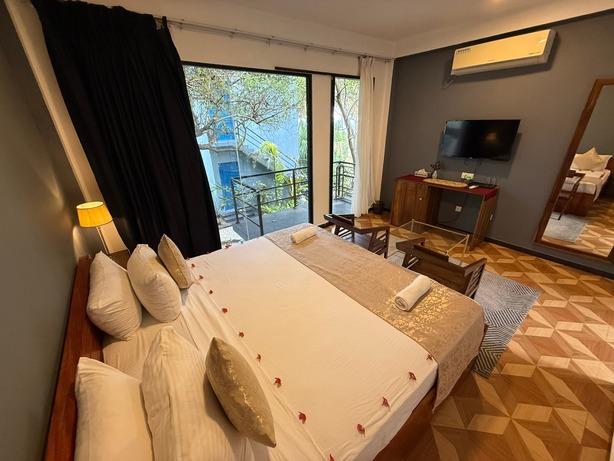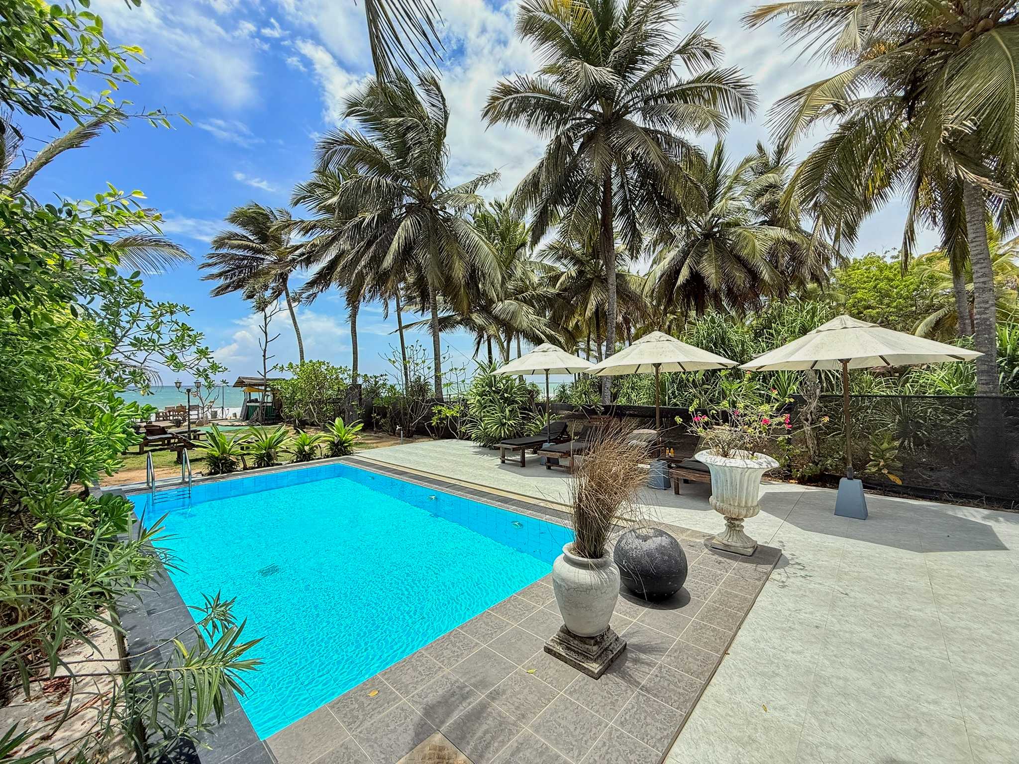 Prostorný dvoulůžkový pokoj v přízemí s přímým vstupem na soukromou terasu a nádherným výhledem na Indický oceán. Ideální pro hosty, kteří chtějí mít moře doslova na dosah.