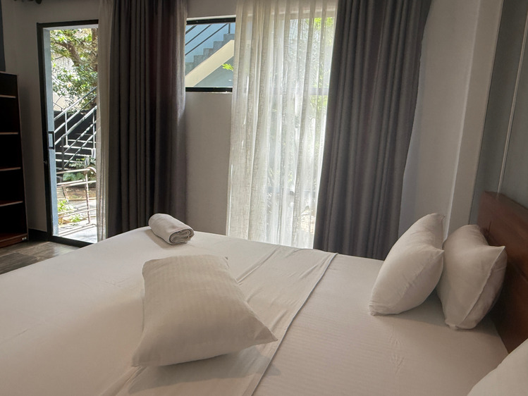 Pokoj č. 2 nabízí kombinaci pohodlí a přímého kontaktu s tropickou atmosférou – otevřete dveře na terasu a oceán máte před sebou. 🌅