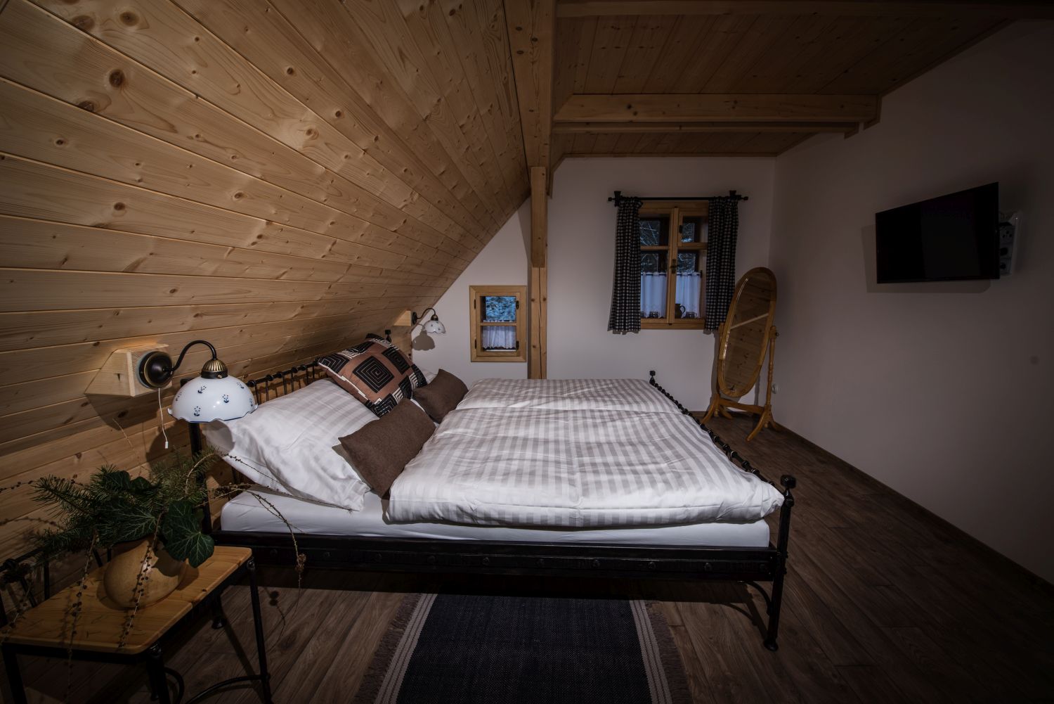 Každý pokoj má TV (O2 TV, Netflix) a Wi-Fi připojení.