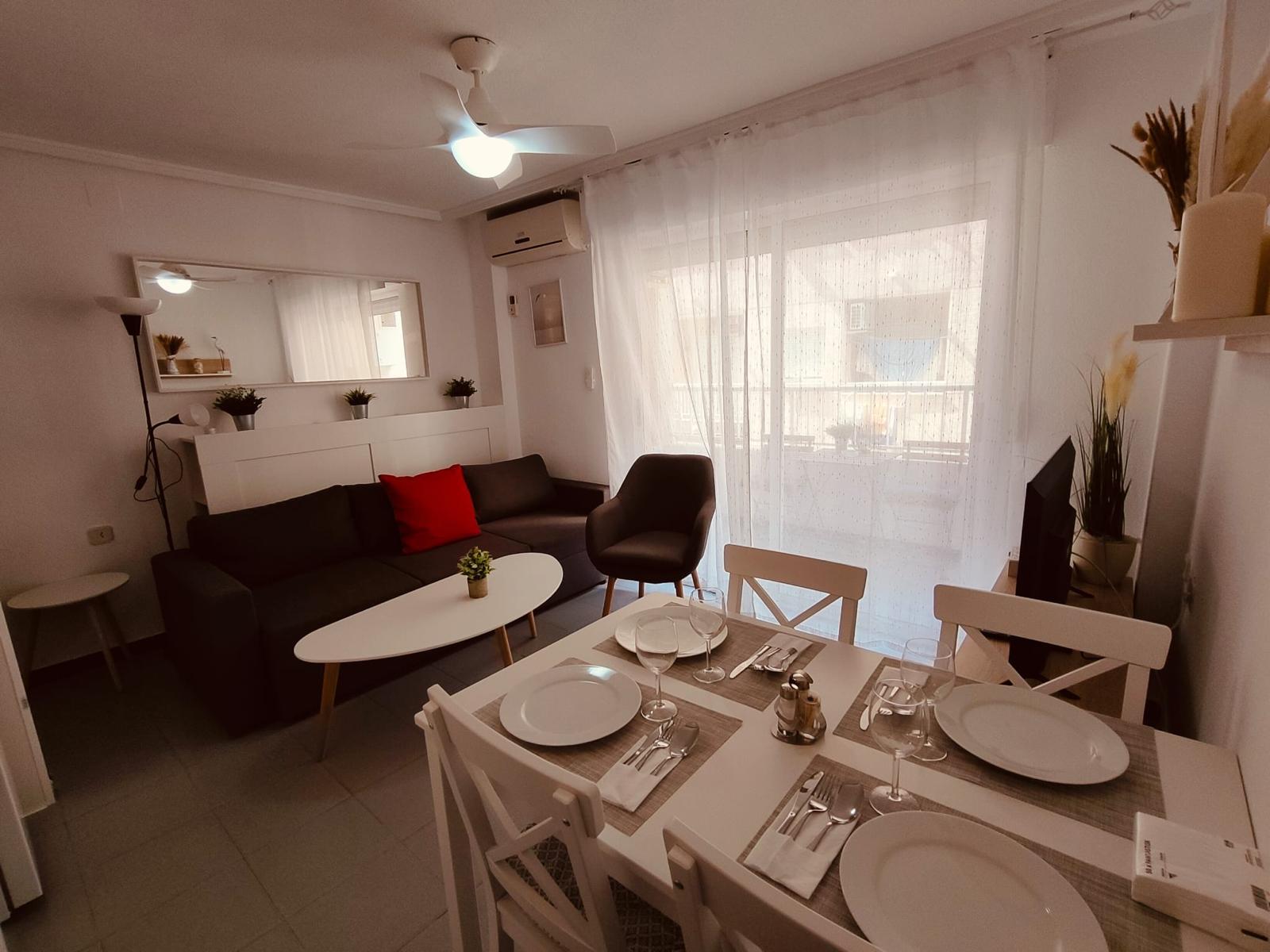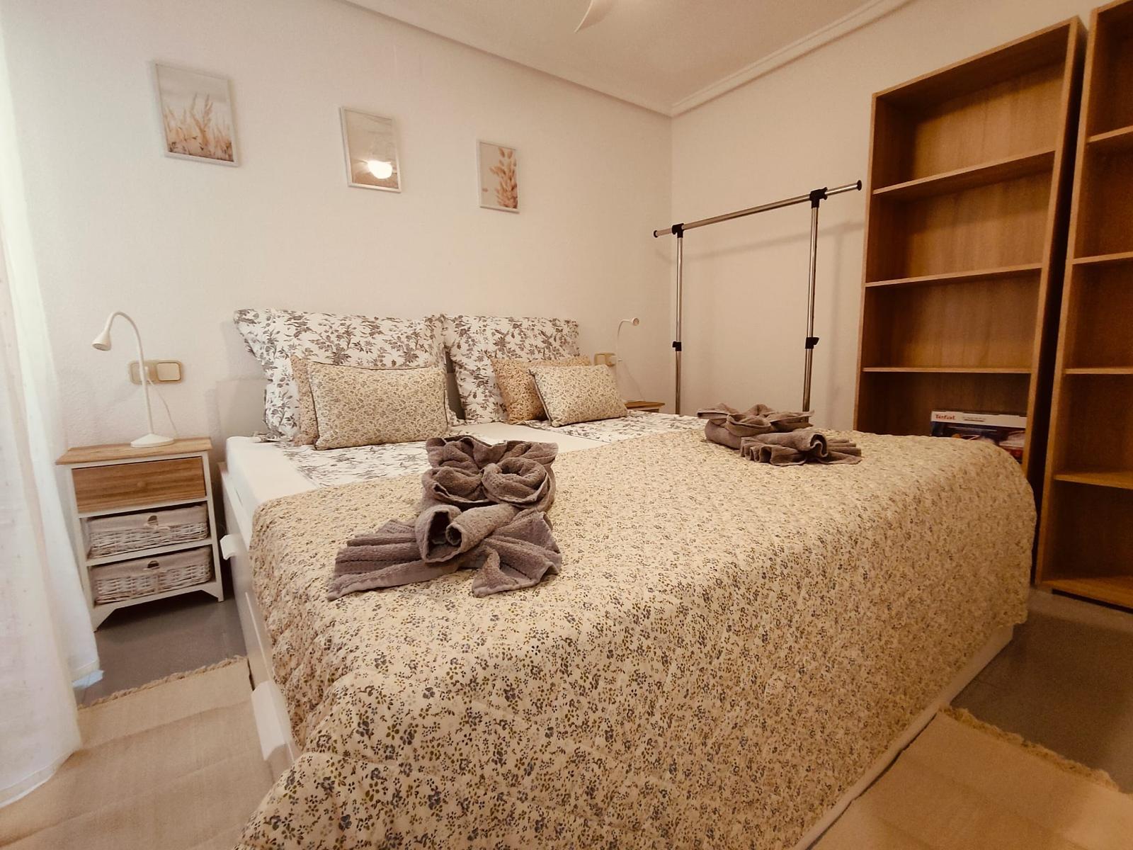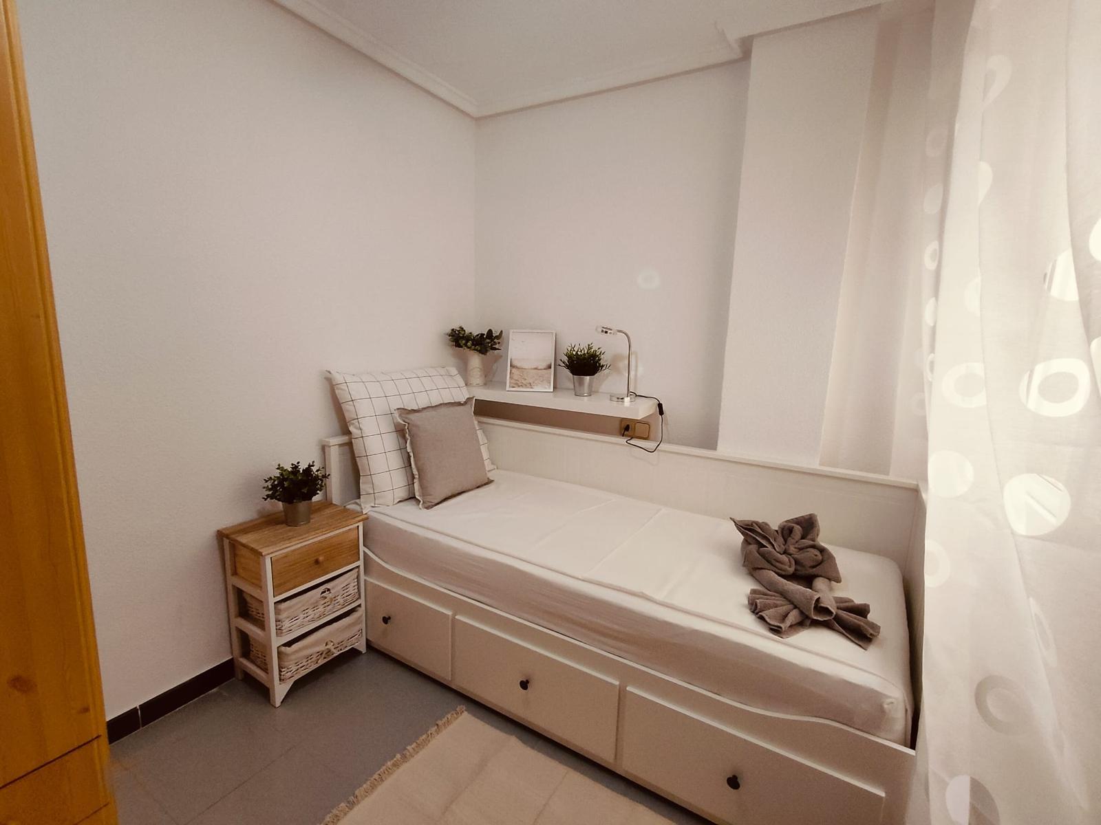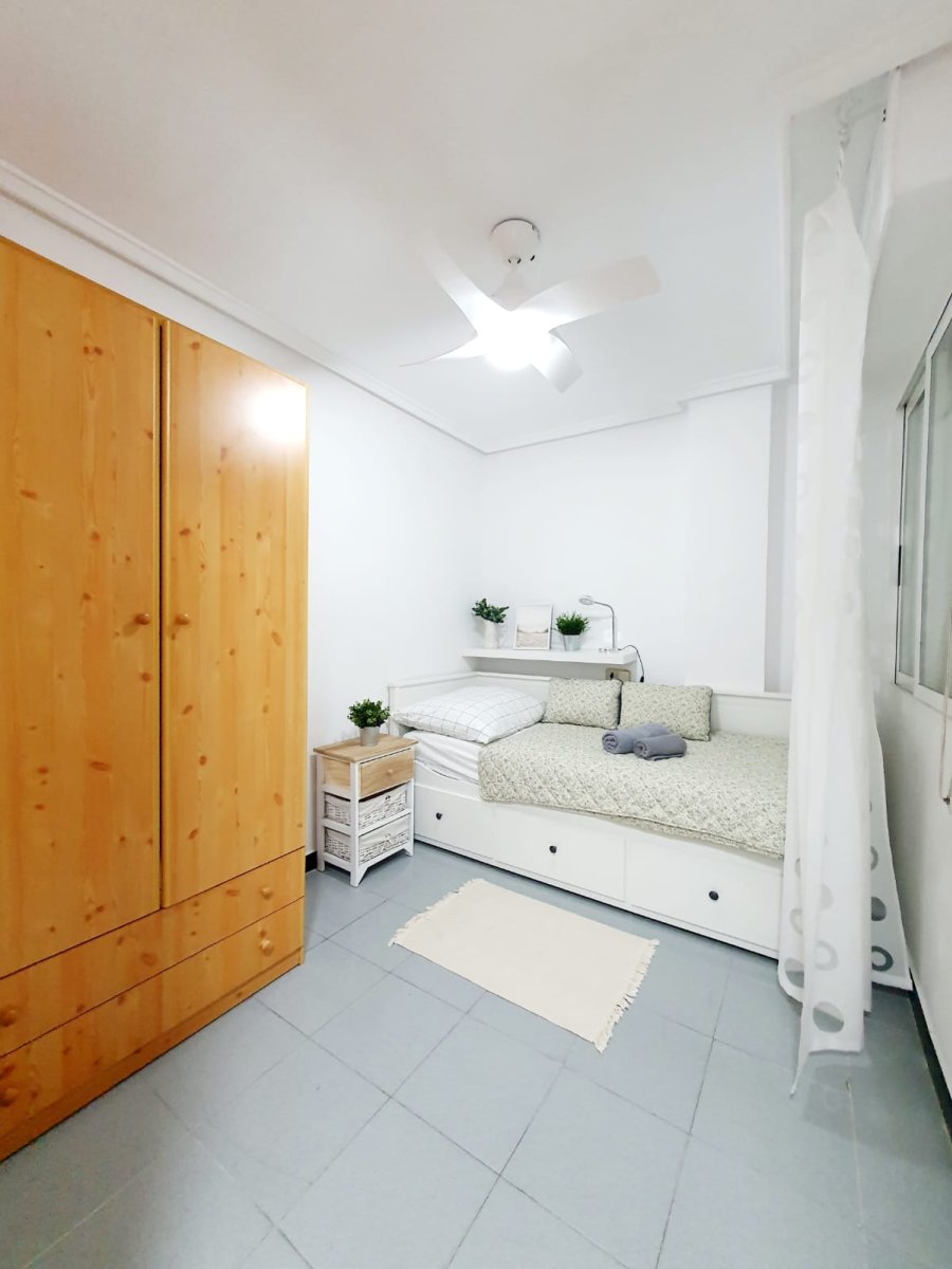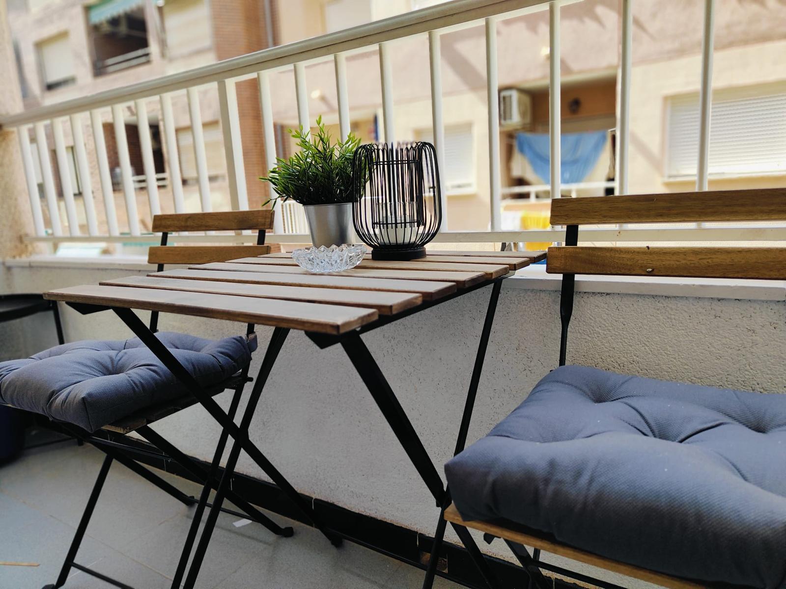 Krásný nově vybavený apartmán 3+kk 60 m2 s balkónem ve druhém patře s výhledem. Kompletně nově vybavený. Apartmán je pouhých 200 metrů od krásné písečné pláže Los Locos s nádhernou promenádou až do centra města Torrevieja. Obývací pokoj- velký rozkládací gauč, kuchyně plně vybavena, pračka se sušičkou, dva pokoje v jedné je postel 180 na 200 s ve druhé 160 na 200. Vybavení na pláž: lehátka, deštník. Vše nové. Vybavení horkovzdušná trouba, varná deska, mikrovlná trouba, touster, topinkováč, presovač, fén, žehlička, žehlící prkno, vysavač, velká lednice a veškeré potřeby na vaření. Vedle spartmánu je místní obchod i restaurace. Obchod Consum 150 metrů.